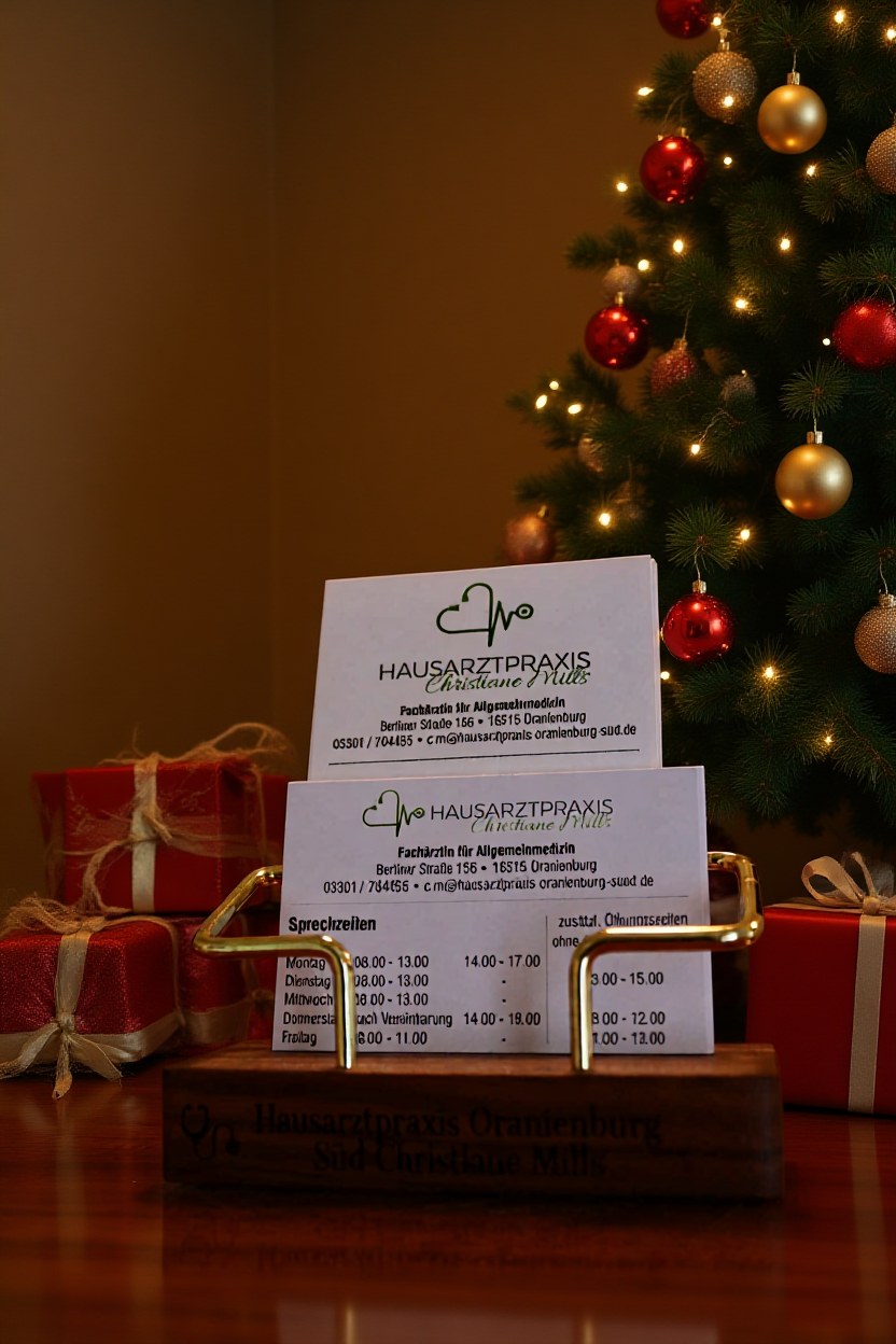 vom 22.12.25 bis zum 01.01.26 im Weihnachtsurlaub befinden. In dieser Zeit bleibt die Praxis geschlossen.